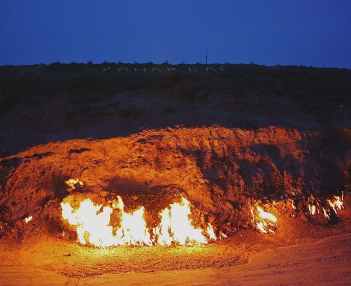 • Янардаг – Огненная гора – 116-метровый холм, расположенный на вершине газового кармана, вызывающий непрерывные извержения пламени. Такова природа этой горящей горы. Этот природный газ постоянно горит на склоне холма на Апшеронском полуострове в Каспийском море в 25 км к северо-востоку от города Баку.
